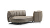 Bett mit umlaufend verschiebbaren Rückenlehnen. Füsse in alufarbig beschichtetem Metall mit aluminiumfarbigen Fusskappen.