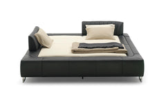 Bett mit umlaufend verschiebbaren Rückenlehnen. Füsse in poliertem Aluminium.