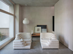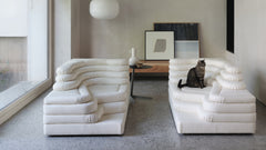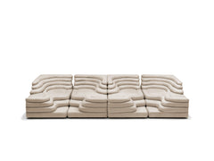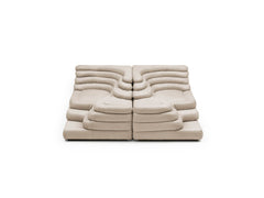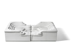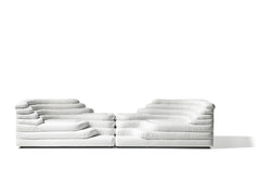 Two sophisticated, stylish sofa elements provide a fantastic foundation for your own personal interpretation of your interior design and furnishing concept. Each individual element is reminiscent of a terraced hill with varying widths and depths. Just one building block on the left and right creates an inviting two-seater sofa, a seating pyramid, or a small sofa mountain range – just like the interiors of the Pop Art generation.