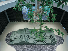 Grünes Ledersofa von Desede Switzerland mit organischen Formen und modularer Funktion.